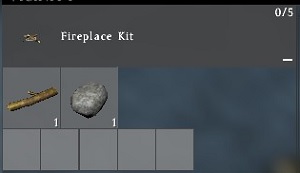 1)3.の"Fireplace"に"Stone"又は"Small Stone"を8個入れる。(8個以下の場合、釜戸にならず、炉辺に石が囲われるだけ) 2)3.の"Fireplace"に"Cooking Tripod"を組み合わせて囲炉裏を作る。
