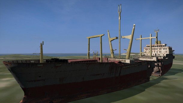 MOD版ではただの座礁した船のオブジェクトであったが、今作はきちんと内部まで作りこまれている。