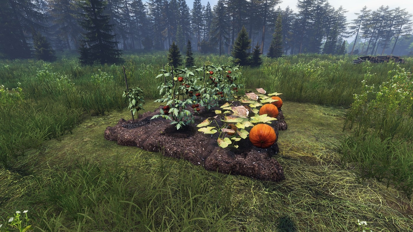 植物栽培です。 比較的短時間で大量の新鮮な野菜が手に入ります。 ピーマン、カボチャ、トマト、ズッキーニの4種類が栽培可能です。 野菜に刃物系アイテムを使うと種が手に入ります。 収穫後に手に入るPlant Materialは肥料として使えます。 (現在、温室を使っての栽培は不可?)